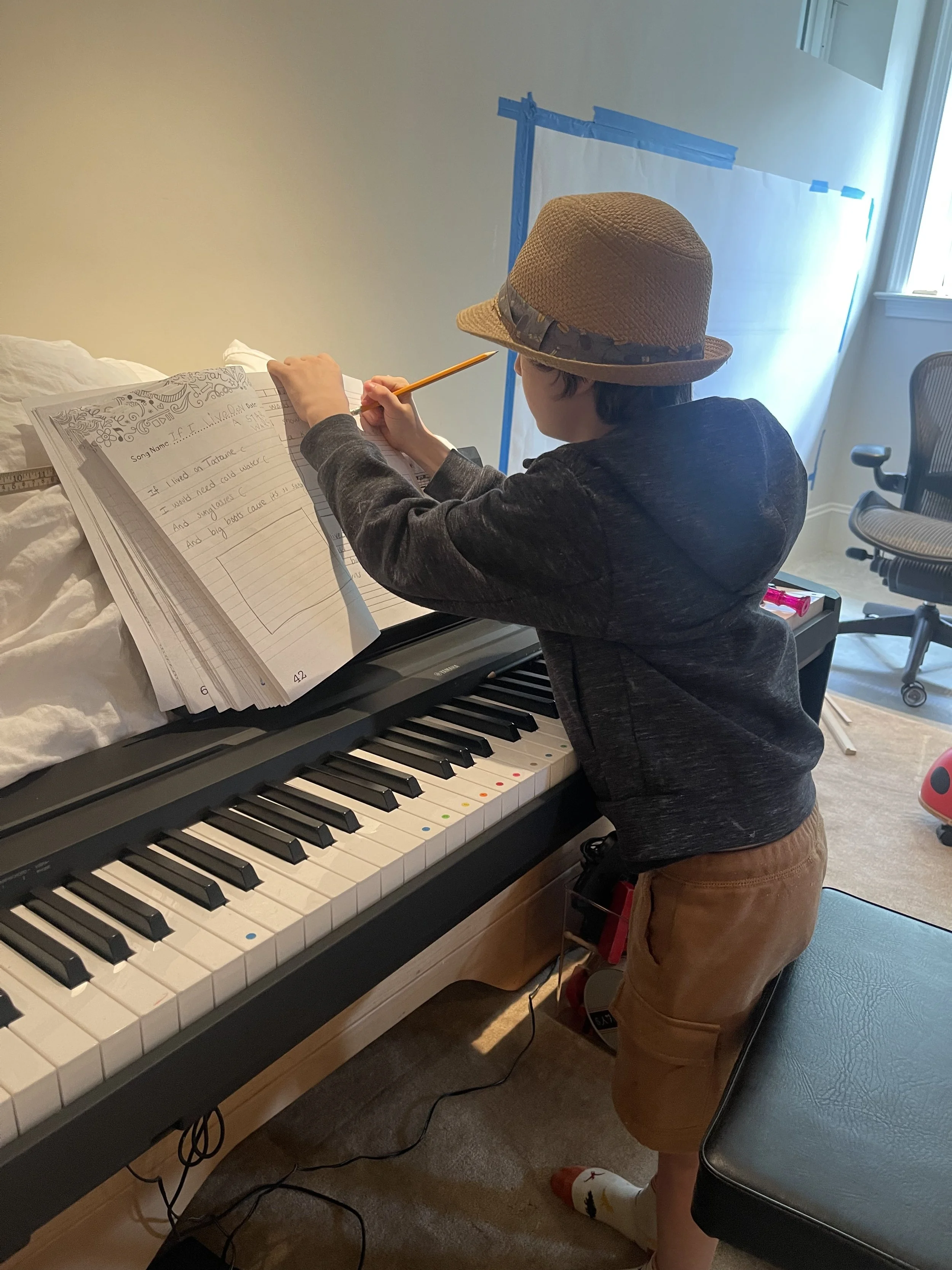 Yes! I use songwriting as a way to encourage my students to discover their musicality and creativity through harmonic & melodic choice, lyrical rhythm, and instrumentation. My students often work off of fun guided prompts (favorite color, vacation, dream pet). The semester ends with designing their very own songbook.